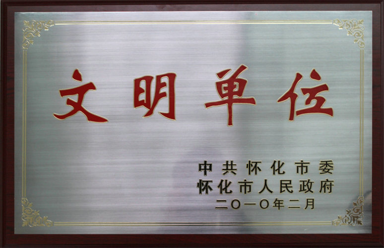 2010年2月公司被中共懷化市委、市人民政府評(píng)為“文明單位”